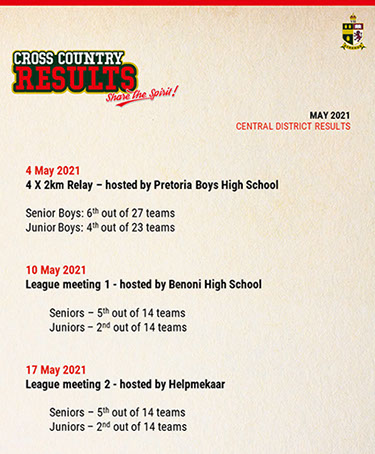 CROSS COUNTRY FIXTURES & RESULTS