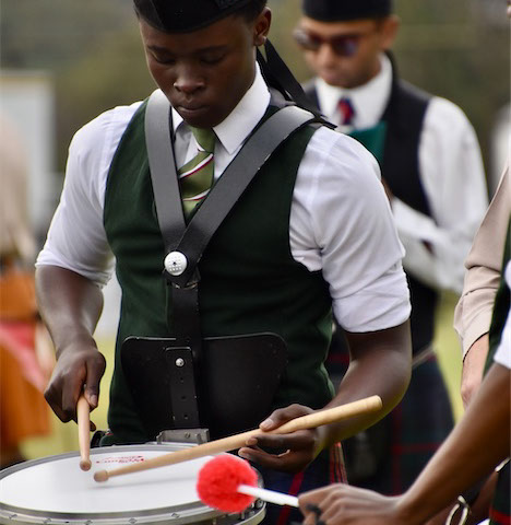 Former Pipe Major Craig Sked, a member of Scottish Power Pipe Band, won the prestigious Oban Silver Medal in Scotland and former Leading Drummer Callaghn Soligram and Peter Davidson played and tutored for the World Championship winning pipe band Benoni Mac-Talla in 2009. Most recently, former pipe Major Kgabe Molepo competed at the World Championships in 2017, with the Auckland and Districts Pipe Band from New Zealand.